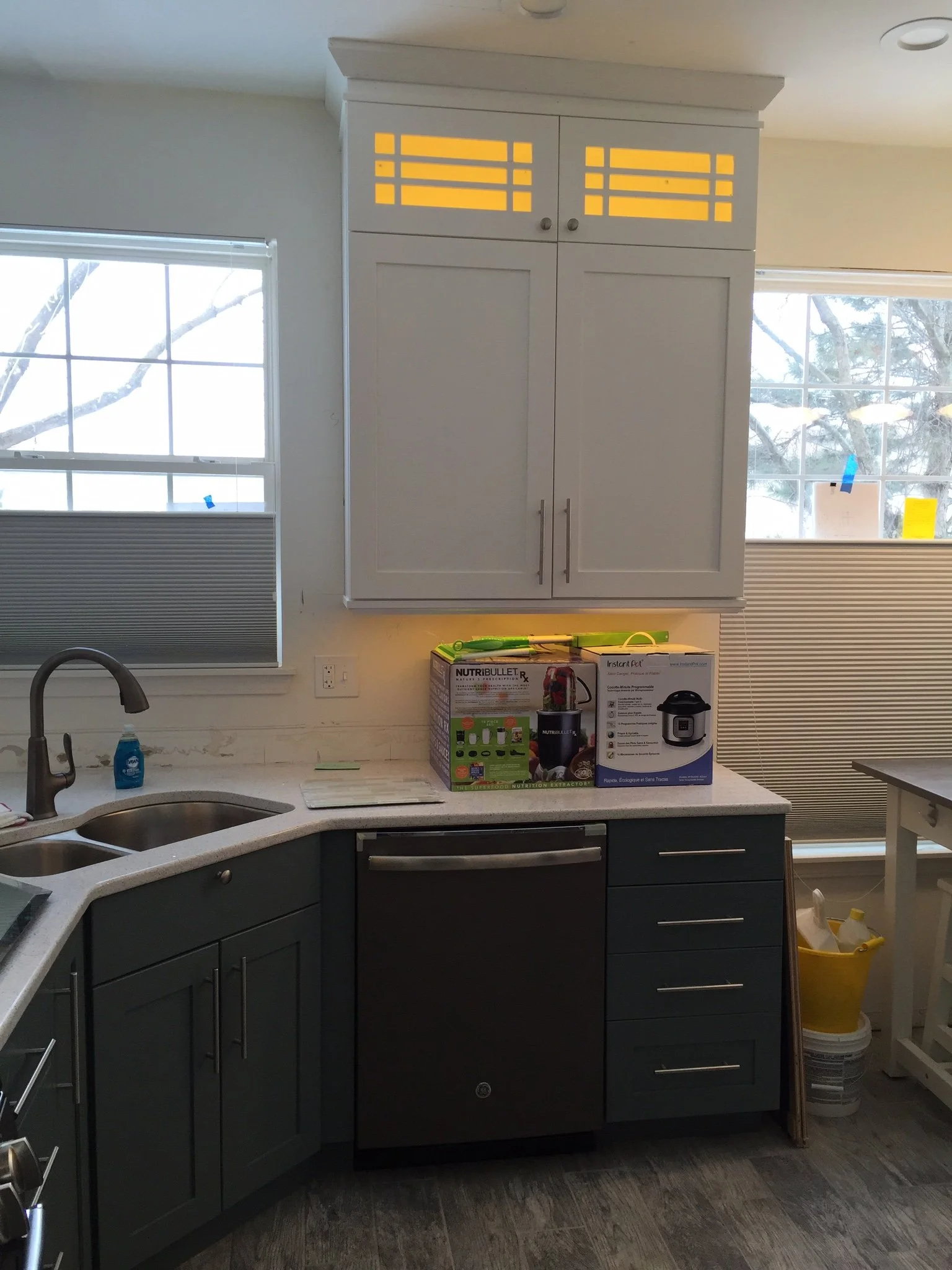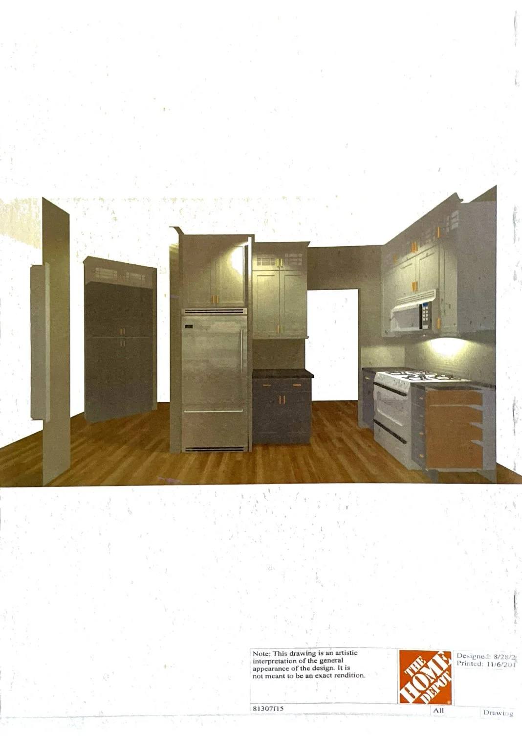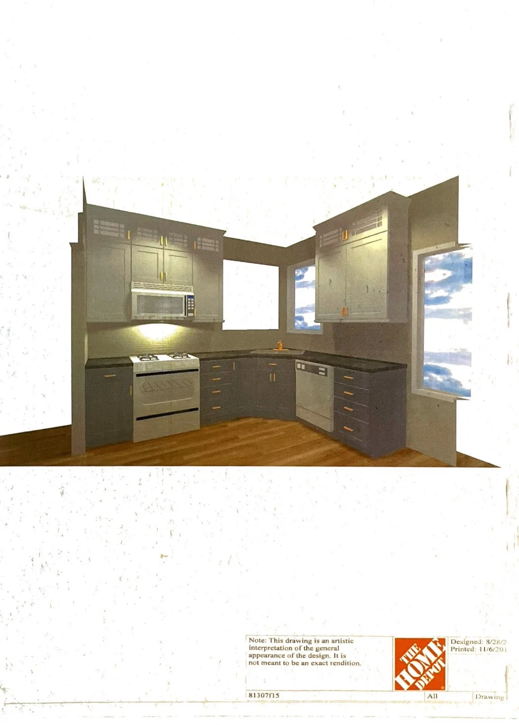 Grace had saved for years and years to build her dream kitchen. She owned a condo in Greyslake Illinois. She knew much of the about could not be changed due to size and space. Graces condo did have vaulted ceilings though so we knew we could use the height. She wanted clean and bright, shaker style, two tone, and a small cabinet on the top with lighting to display her trinkets. I signed Grace up for a kitchen analysis to be done by the installer. He then sent me images and measurements even plumbing and electrical placement. I took Graces vision throughout the whole first level of the condo. Home Depot installed new flooring through the first floor, new light fixtures, new toilet and vanity, new base molding, and brought plumbing and electrical to code. From old drab linoleum with oak cabinets and white appliances to calm blues and bright whites. Grace invited me into her life and we formed a great relationship!